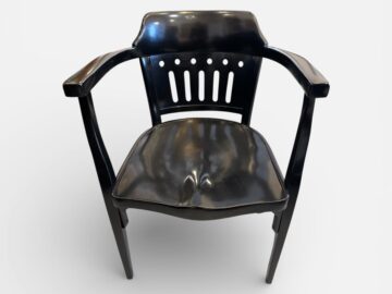 Dieser originale Fächersessel wurde von der Firma Thonet-Mundus um das Jahr 1900 gefertigt. Das zeitlose Stück erfreute sich einer fachmännischen Restauration im Zuge derer es schwarz gebeizt wurde.