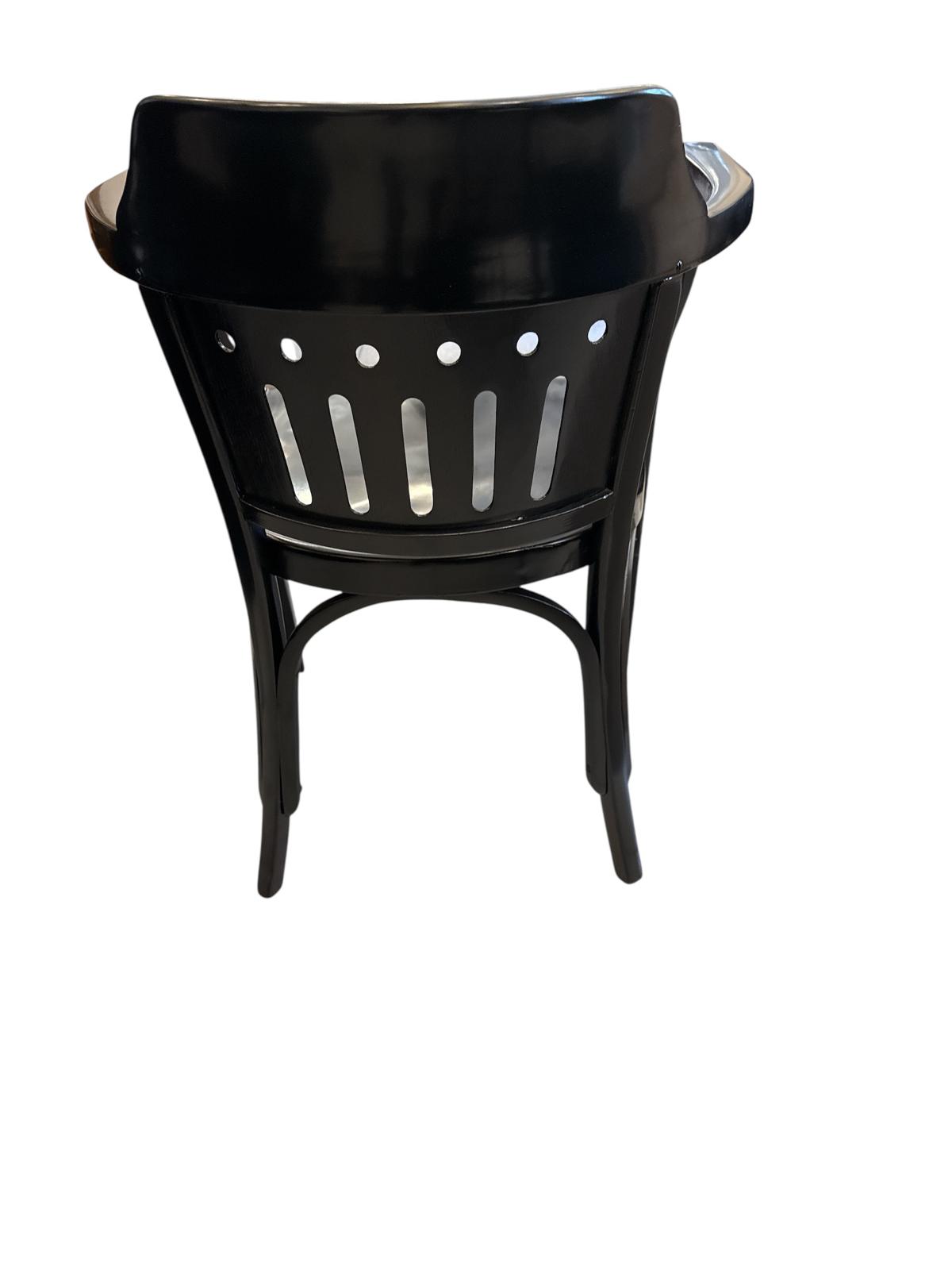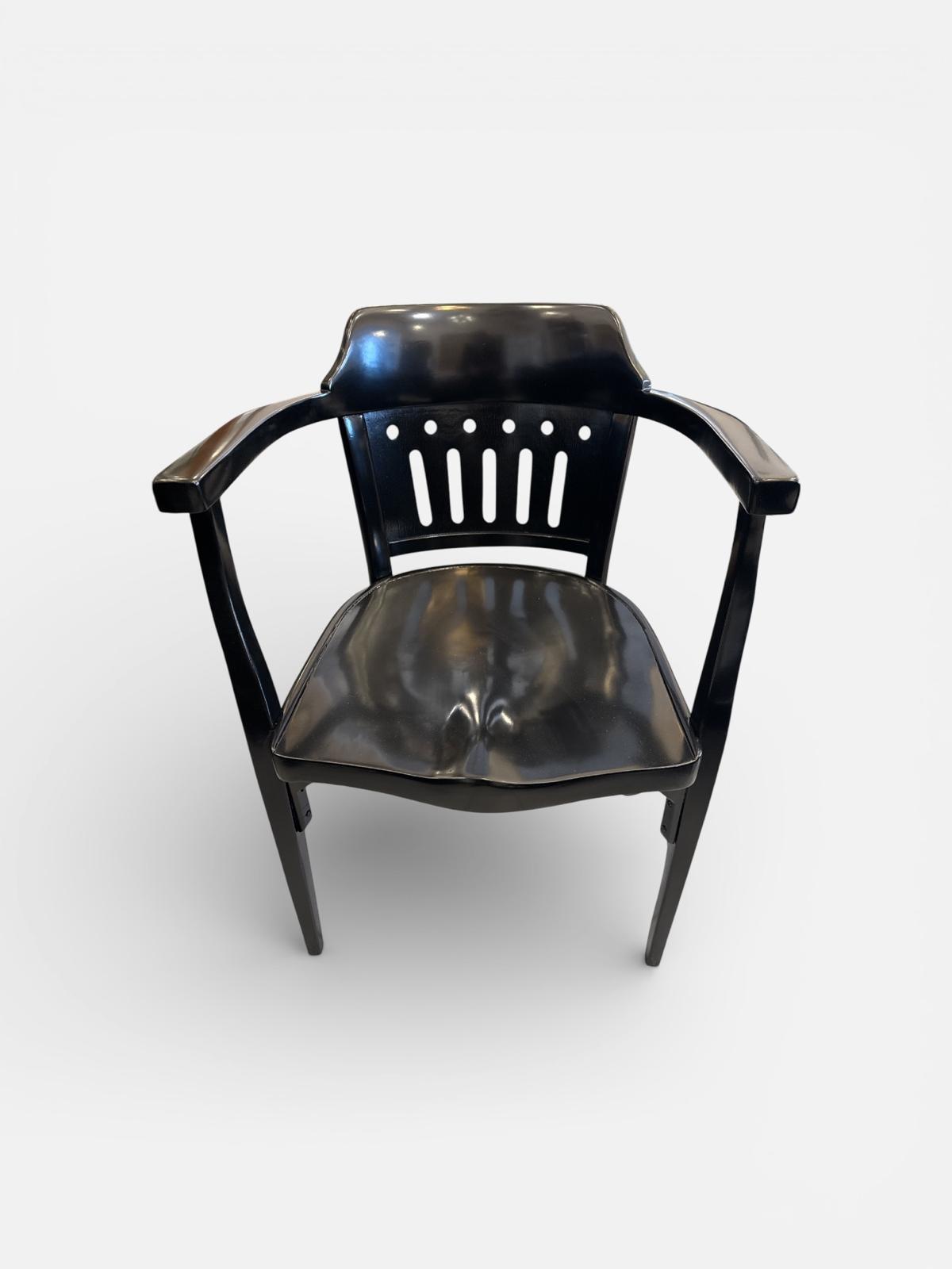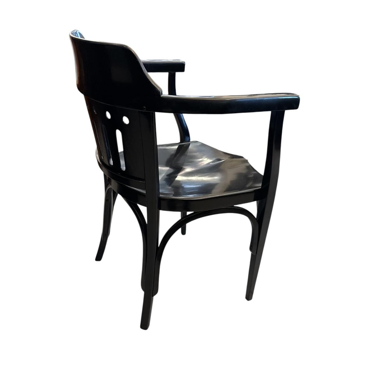 Dieser originale Fächersessel wurde von der Firma Thonet-Mundus um das Jahr 1900 gefertigt. Das zeitlose Stück erfreute sich einer fachmännischen Restauration im Zuge derer es schwarz gebeizt wurde.